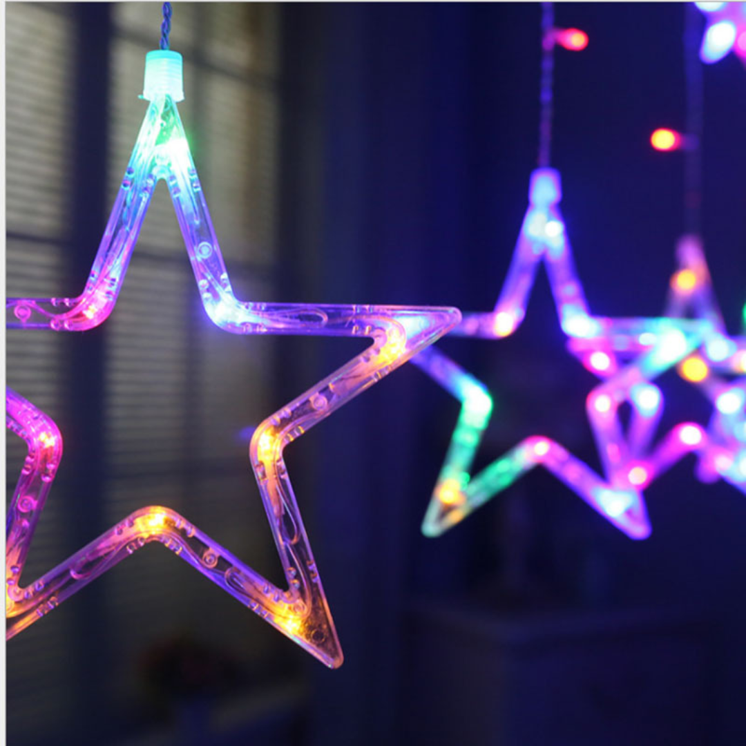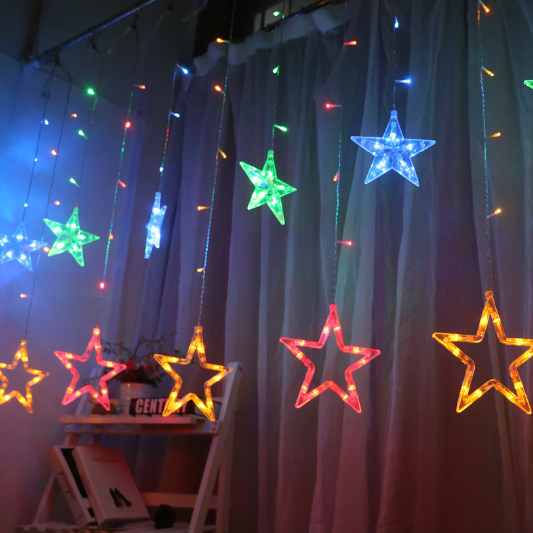 Modelo Cascada punta de estrella colorida de 4mts y 138 lámparas